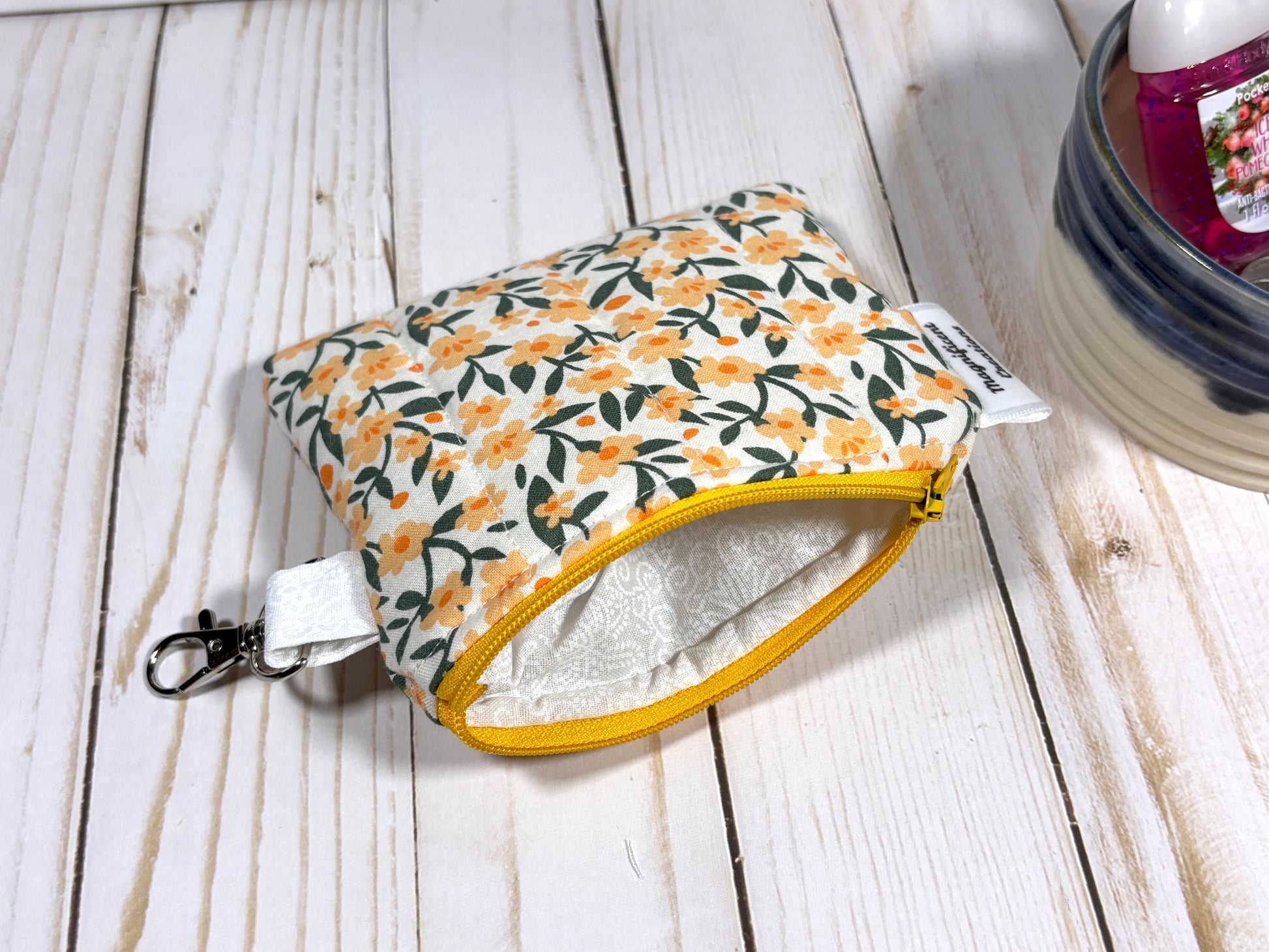 Brighten up daily routines with this hand‑quilted mini keychain wallet. Designed for compact convenience, it attaches directly to your keys or handbag and tucks comfortably into a pocket. With space for cash, coins, a chapstick and small essentials, this wallet keeps your most-used items within easy reach.