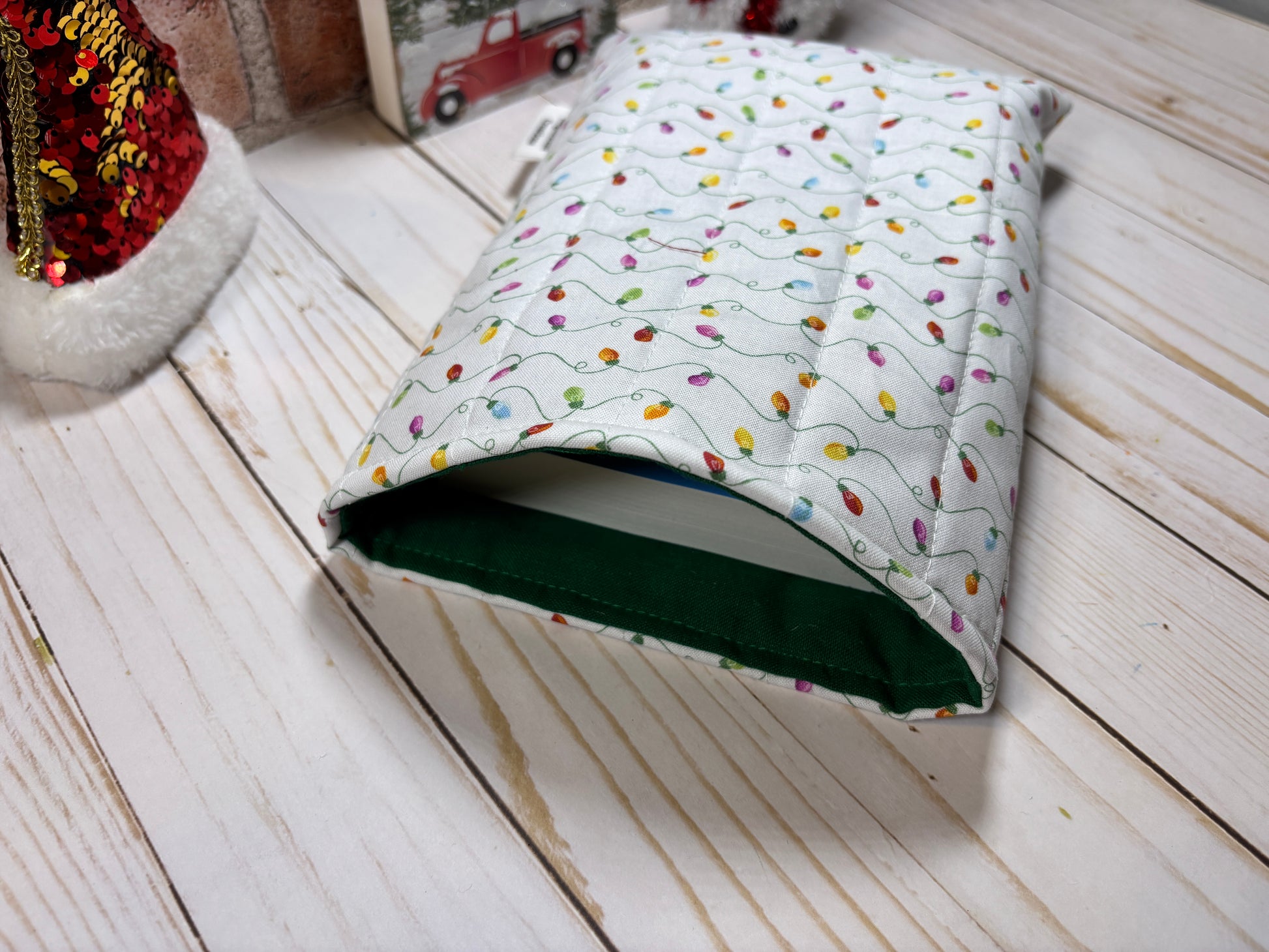 Keep your favorite reads and devices safe in festive style with this handmade quilted Christmas sleeve! Each sleeve is lovingly crafted with premium cotton fabrics in cheerful holiday prints—perfect for cozy reading by the fire or gifting to the book lover in your life.